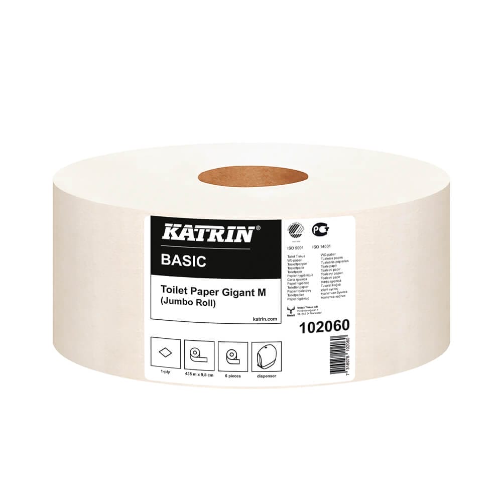 Katrin Basic Gigant är vårt enklaste toalettpapper för offentliga miljöer. Du får ett natur vitt toalettpapper uppfyller basbehovet för ett offentligt hygienutrymme.