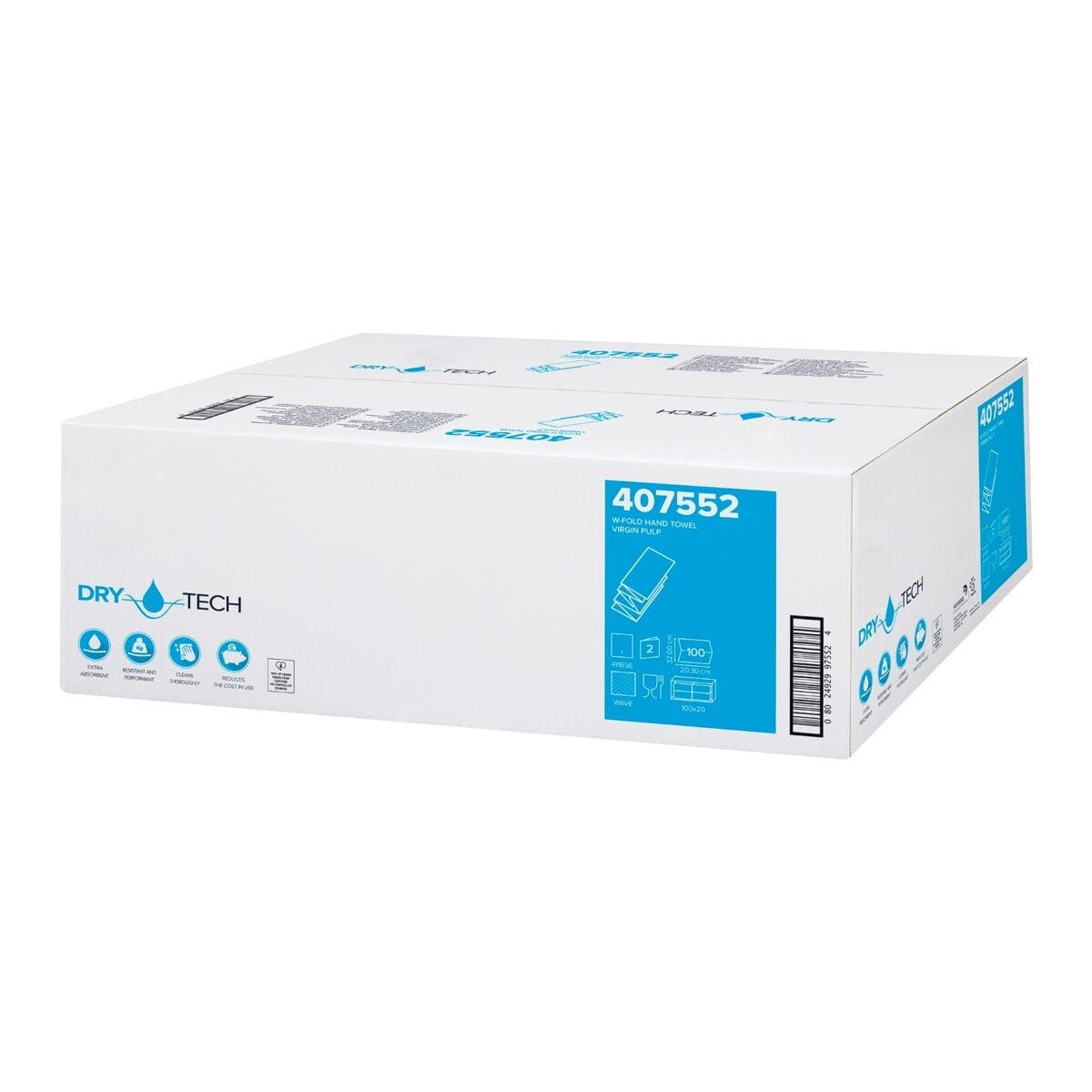Pappershandduk Drytech Multifold TAD levereras i buntar om 100 ark och totalt 2000 ark per kartong. Kombinationen av äkta TAD-kvalitet, extra långa ark och hög komfort gör detta till ett självklart val för verksamheter som vill erbjuda handtorkning utöver det vanliga.