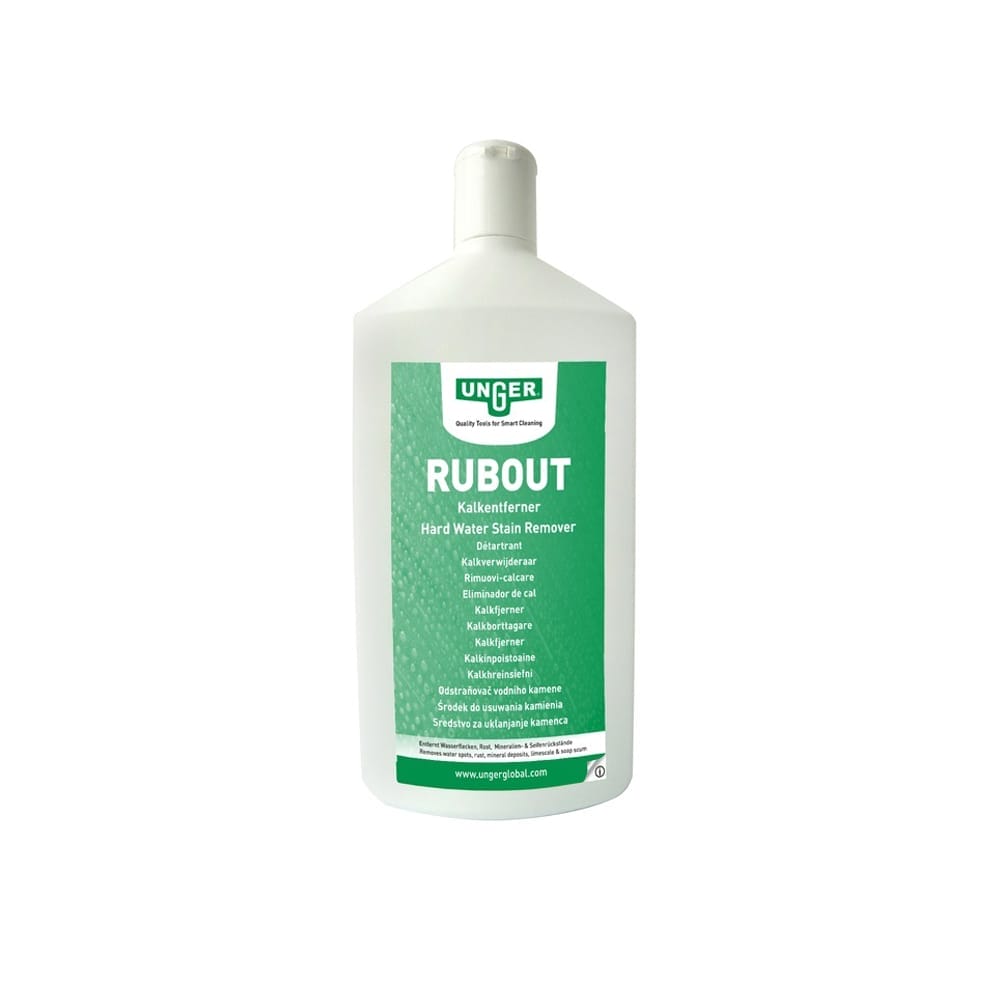 Unger Fönsterputs Rub Out 0.5L – En kraftfull rengöringsprodukt speciellt framtagen för att avlägsna hårt sittande smuts och fläckar från glasytor. Unger Rub Out tar effektivt bort kalk, mineralavlagringar, rost, tvålrester och vattenfläckar – utan att skada glaset.